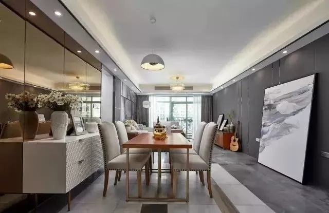 餐廳燈光主要是為了突出美食,可以選用筒燈或者顏值高的吊燈,增加空間的個性,還能突出食物的美味。為了避免出現(xiàn)餐桌過亮其他區(qū)域過暗的情況,可以增加均勻分布的嵌燈,或者加一盞落地燈,增加漫反射的照明,形成一個光線柔和的空間 ▼