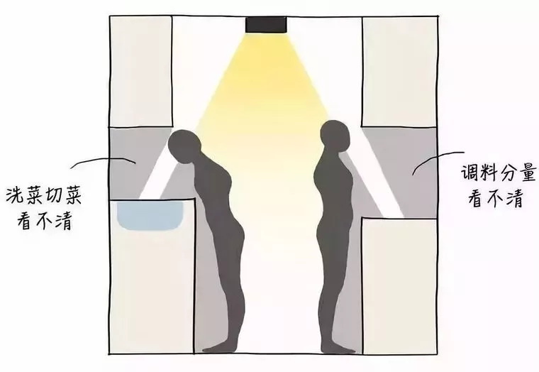 當你切菜煮飯的時候就會發(fā)現(xiàn),你剛好擋住了吸頂燈下的光,面對的地方都是一片陰影。是不是仿佛又看到了自己在廚房摸黑切菜的樣子?