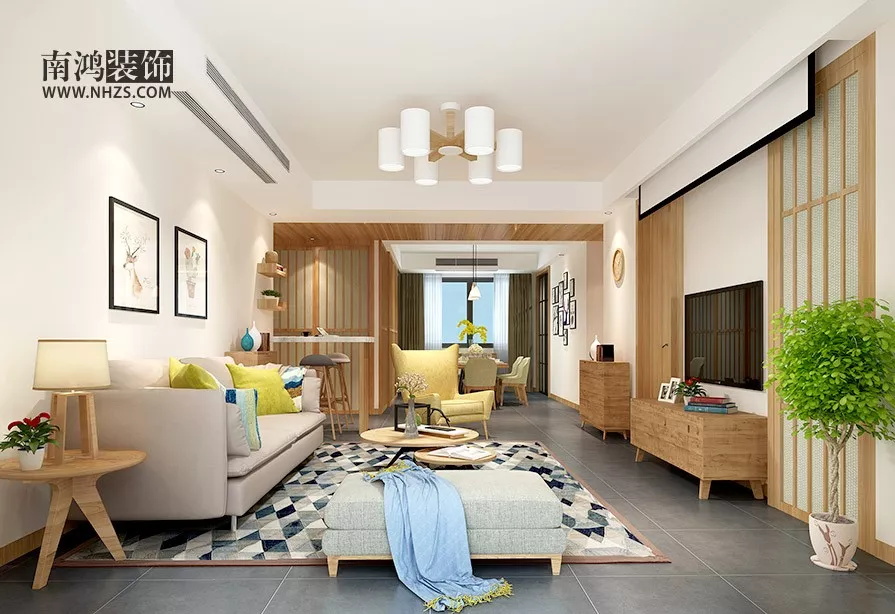 客廳盡量選擇LED射燈,射燈的燈光,不刺眼、分布均勻,且光線都向下投射,完美弱化了天花板的存在。