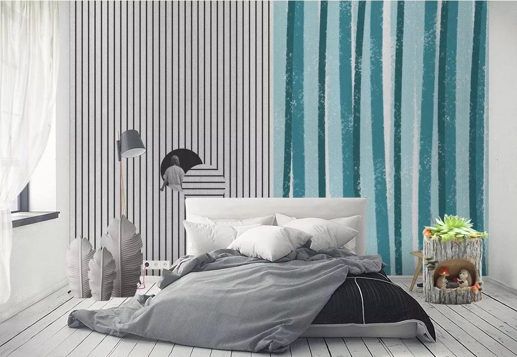 將所有墻面或其中一面墻貼上細長條紋的墻紙,能讓房子看起來更高。更便宜的乳膠漆也能達到同樣的效果。