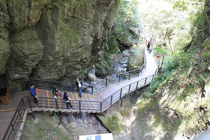 我們經過“問仙橋”,走著那清涼的石子小路,來到“神筆畫天”面前,看呀,那座山的山坳里露出了一個毛筆頭,筆尖對著天空,漸漸飄來的白云,好像是它那杰出的作品。真不知是哪位神仙把那么珍貴的寶物丟在了神仙居這廣闊的土地上。