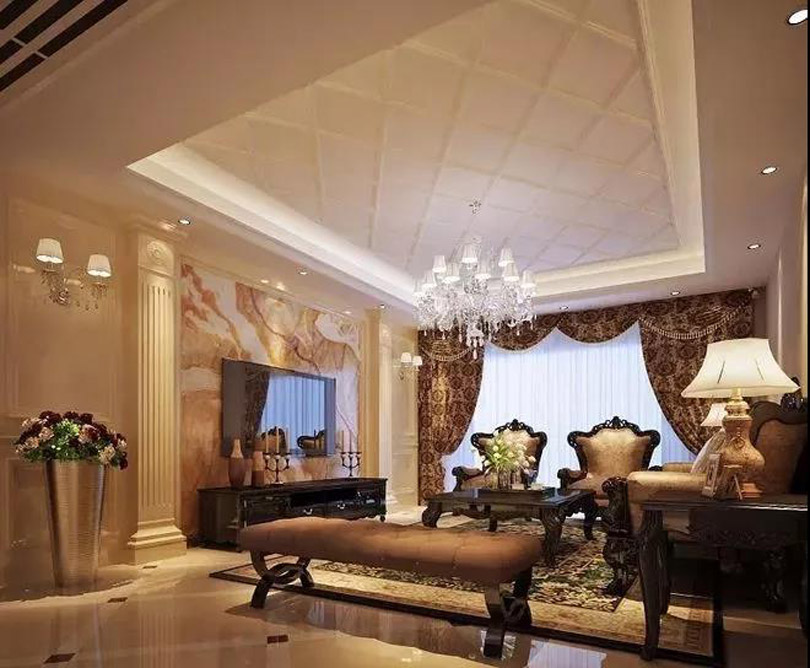 在很多偏歐式、新中式的空間設計中一般都會采用這種吊頂設計,主要就是看重它所能呈現出的兼具現代與古典的優雅氣質。