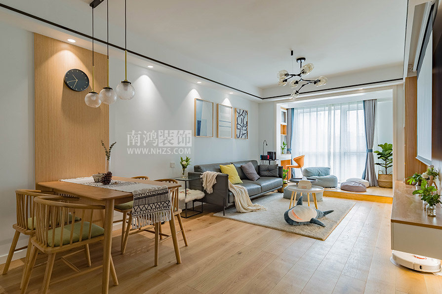 北歐風(fēng)的要義之一就是通透明亮的室內(nèi)條件,開放式是常見的做法,并且喜歡利用各類軟裝、家具來劃分區(qū)域,而不是硬隔斷。