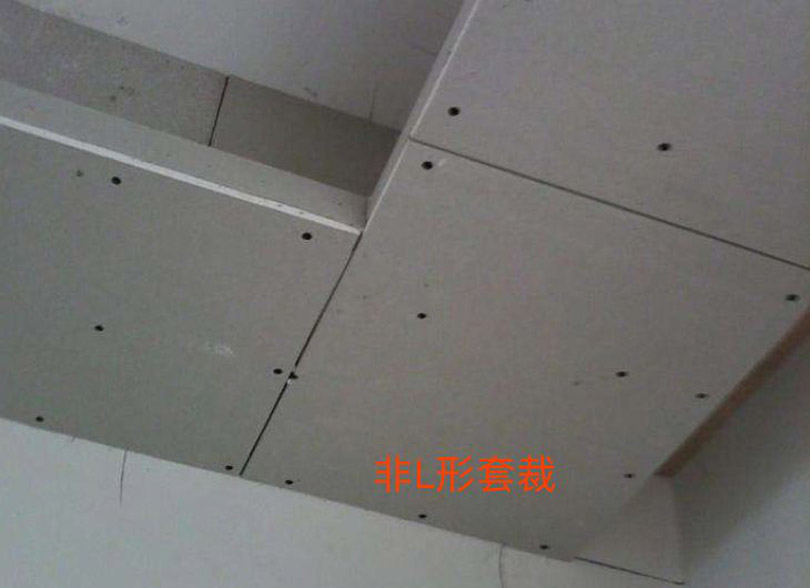 如果有拐角,切記不能用兩塊石膏板拼接,而是要將一塊石膏板套裁成“L”形安裝,這樣吊頂才會更加牢固。如果用兩塊石膏板拼接,就可能會因為結構不穩定而導致開裂,進而產生吊頂“崩塌”的慘烈狀況。