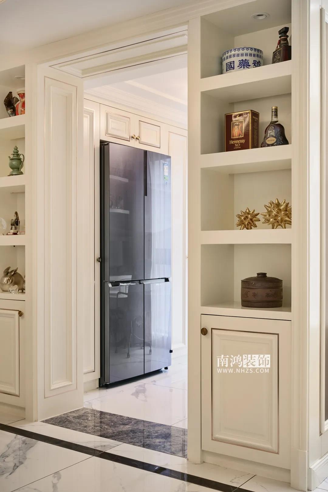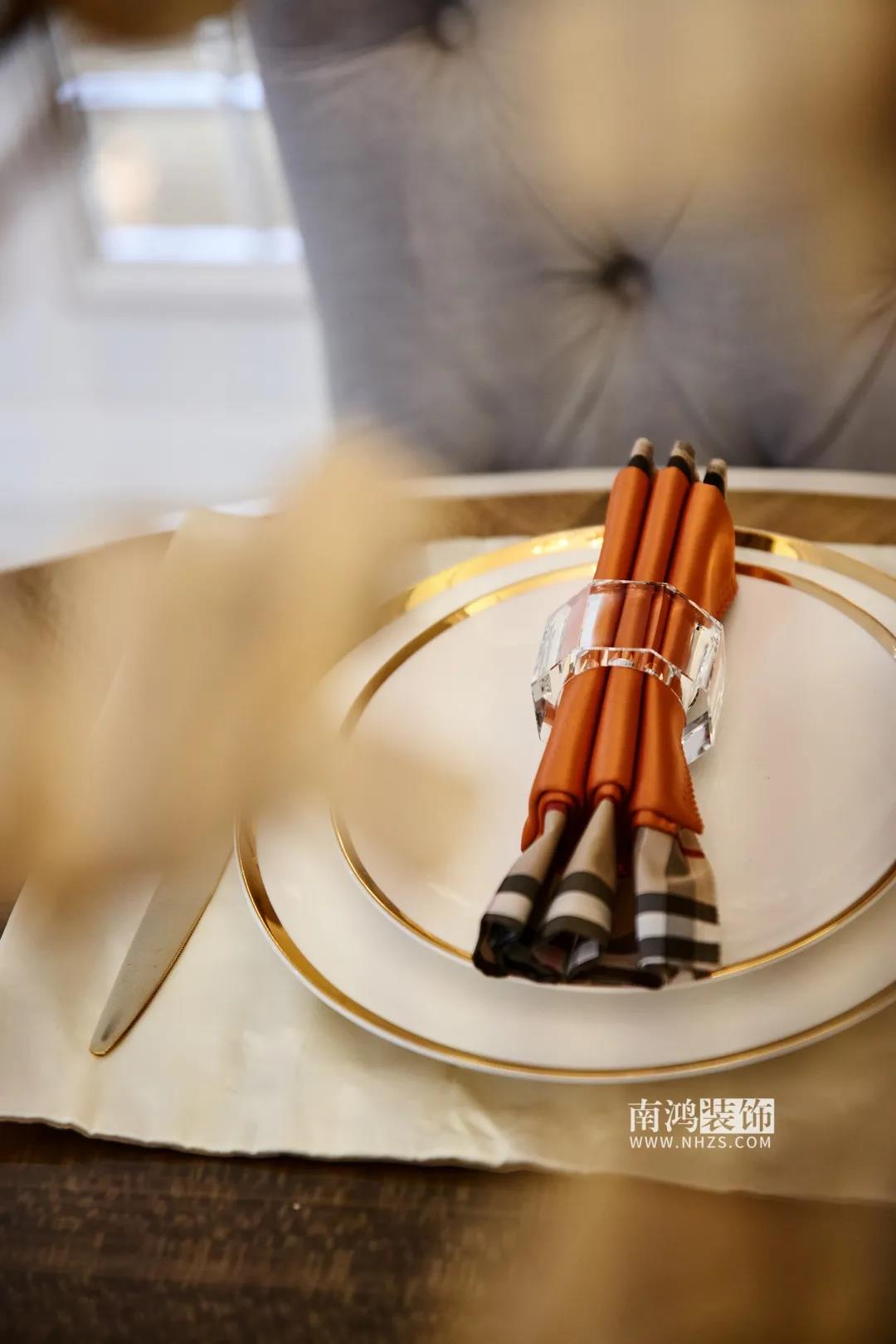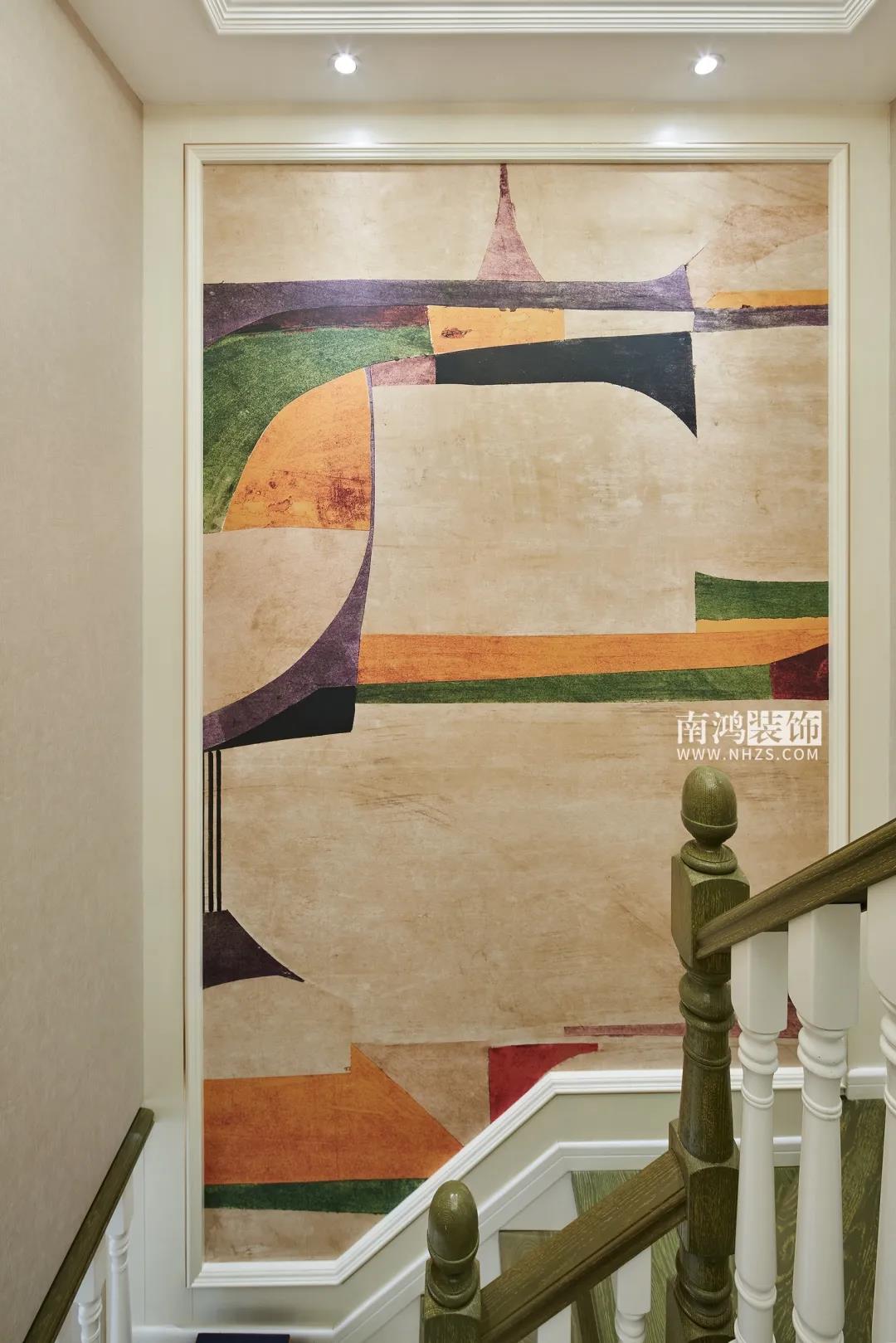 【項目·信息】 地址 / 名門世家 戶型 / Loft戶型 面積 / 139㎡ 風格 / 現代輕奢美式 設計施工 / 浙江南鴻裝飾 本案為業主朱女士的退休住房,平常是夫妻倆居住,女兒一家四口會偶爾過來。朱女士本人性格十分熱情開朗,喜愛旅游、運動,在房屋設計上要求明快而時尚的色彩搭配,以及足夠多的儲物空間。 本案在硬裝上是以實木復合木作和工藝皮革硬包為主要材質,家具軟裝則是在象牙白的基調上,添加入業主喜愛的亮麗色彩和具備現代感的輕奢元素,擯棄了厚重的外形表現,更加注重保留美式特有的溫情體驗。 · 一樓書房采用開放式設計,很好導引了采光。 · 調整了樓梯洞口的長寬與踏步尺寸,定制同色復古風扶手、踏步,讓樓梯區域看起來更有質感。 · 樓梯下方使用木飾面暗門,背后做儲藏室設計,增加儲物空間。 象牙白色,既溫暖又包容,低調而又內斂,作為室內的主基調是再合適不過了。 客廳以現代生活方式的簡約表現融合優雅的美式古典元素,成就別具一格的輕奢空間。 餐廳與客廳之間沒有隔閡,能實現更高的互動性。木質拼花圓桌與圓潤吊頂呼應,演繹出動人的空間韻律。 餐廳一側壁面以大幅鏡面元素裝飾,通過其反射光線的效果擴寬了空間的視覺維度,并極大增強采光。 書房做開放式設計,讓光線可以不受約束地傳遞到外部餐廳的位置,同時留出一部分柜體位置以嵌入冰箱,節省廚房空間。 樓梯洞口的長寬與踏步尺寸均得到精細調整,特意做舊的復古綠木扶手、踏步會更具質感和設計感。墻面定制抽象掛畫,跳躍的色塊激情傳遞著活力因子。 女業主的臥房,為貼合她熱情開朗的個性而選擇了愛馬仕橙的硬包背景來點亮整個室內空間,簡潔又不失格調。 為女兒準備的臥房,更能體現當代都市女性的審美需求。整體以沉穩的中性色為基調,搭配深藍色天鵝絨休閑椅和暗紫色絨布窗簾,富有層次感的色彩輕松打造出頗具藝術感的睡眠環境。