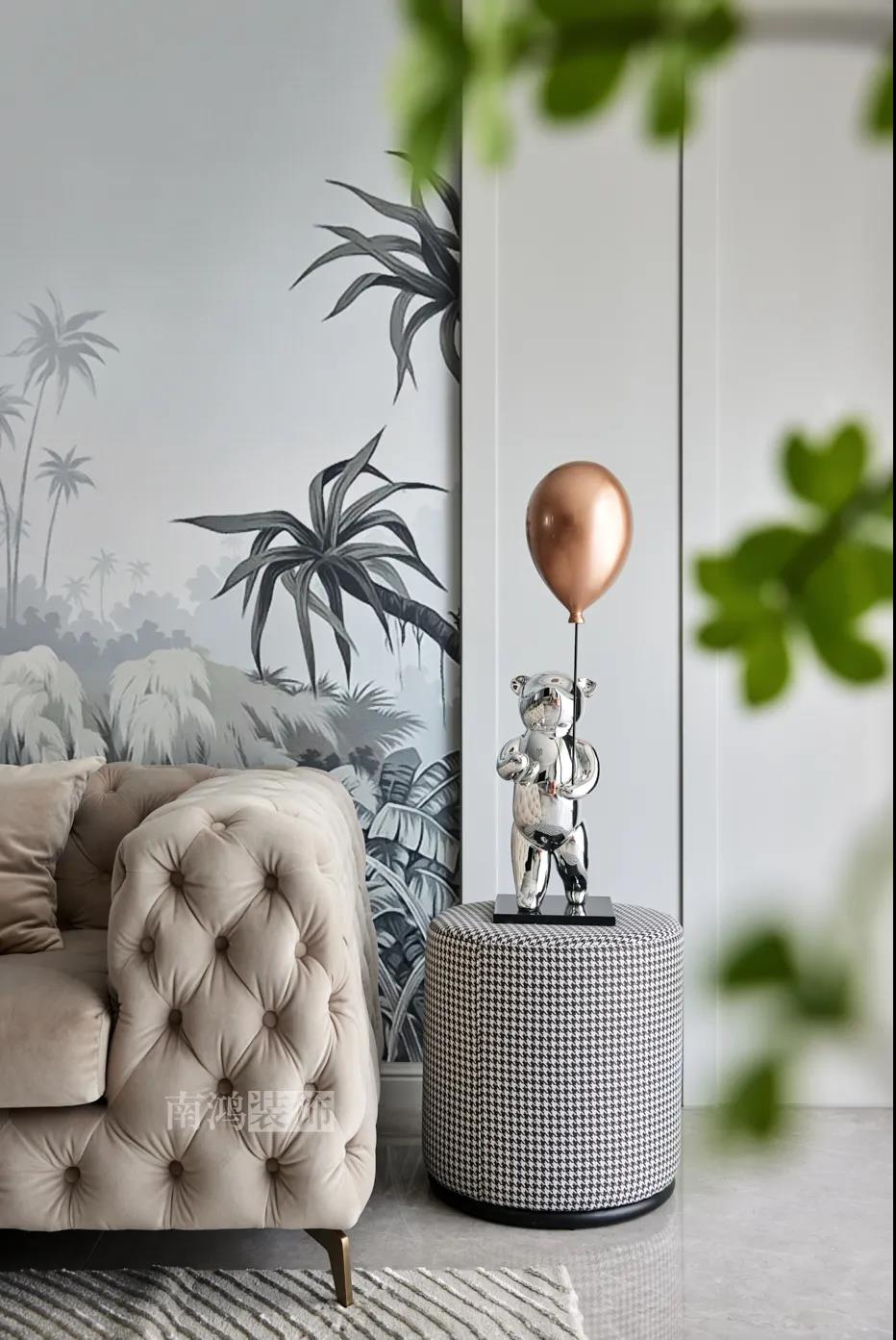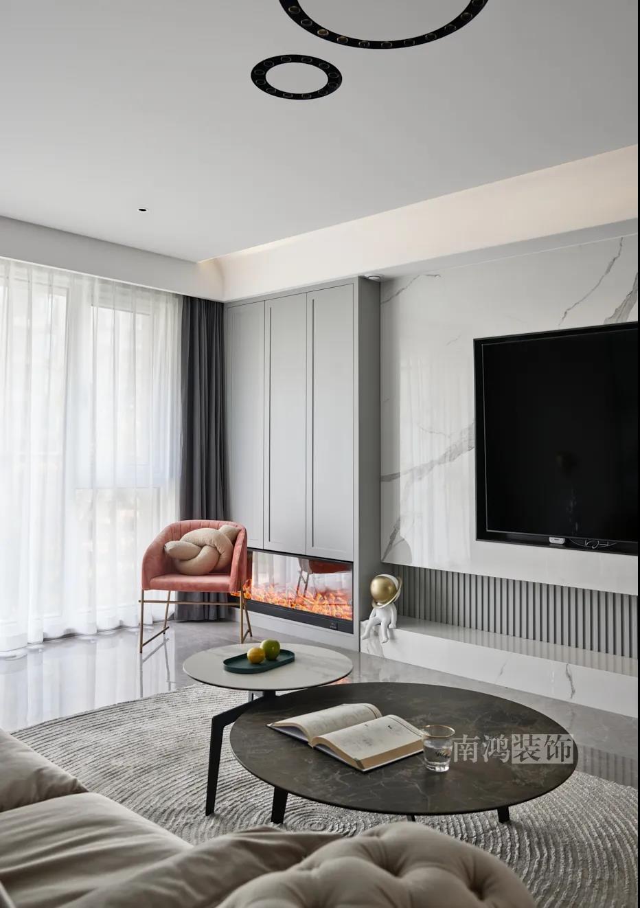 01. 客戶需求 本案的屋主非常喜歡小美式風格的清新自在,又向往著現代簡約所傳達的生活理念,所以設計師依照他的喜好,將兩種風格元素巧妙糅合,讓整體空間在浪漫優(yōu)雅的情調中傳遞出主人的獨特品味。 02. 裝飾亮點 REFRESHING 擯棄了粗暴的材質堆砌,將小美式與現代簡約巧妙結合在一起,色調上選用低飽和度的高級灰與柔和的莫蘭迪色,致力于呈現一個唯美純粹、具備高級感的美學空間。 03. 戶型圖 04. 設計落地 客 廳 客廳以高級灰為主基調,低飽和度的特性使得它具備很強的包容性。 電視背景將美式的經典線條護墻與利落的大理石磚組合,沙發(fā)背景則做了木護墻隱形門處理,配以簡單干凈又不減細節(jié)的吊頂,既實現了兩種不同風格元素的結合,又能讓造型為居家功能服務。 靠近陽臺擺放一把亮麗單椅,電子壁爐內躍動著溫暖的火苗,成為美妙的休憩一角。 節(jié)制而有意蘊的設計手法,賦予空間最具詩意的內涵表達。 開放的領域中,客餐之間連貫而又相對獨立,在敞闊的尺度中讓主人感受到家的舒適。 餐 廳 餐廳,是讓人走近便頓覺眼前一亮的空間所在。花朵般嬌嫩的煙粉色,是莫蘭迪色系中超有存在感的一派,又如晚霞,純凈美好,撲面而來便是夢幻與浪漫的氣息。 餐廳處還添加入西廚的功能,讓廚房實現多功能化,同時弱化了原區(qū)域的狹長感。 過 道 “人生忽如寄,莫辜負茶、湯和好天氣。”清朗平和的過道景致,自給人一種寧靜的深邃感受。 臥 室 臥室刪繁就簡,通過淺色的床品與干凈的硬包背景,營造簡約純粹的清韻。 兒童房是一個多姿多彩的空間,活潑的星星圖案,多種低飽和色調搭建的背景墻面,整體氣氛輕松愉悅,作為一個成長型空間來說也充滿著可塑性。 衣 帽 間 純白的視象,抽離了所有多余的表達,兩側衣柜默默擔當著收納的使命,井然有序地包容著一切冗雜。