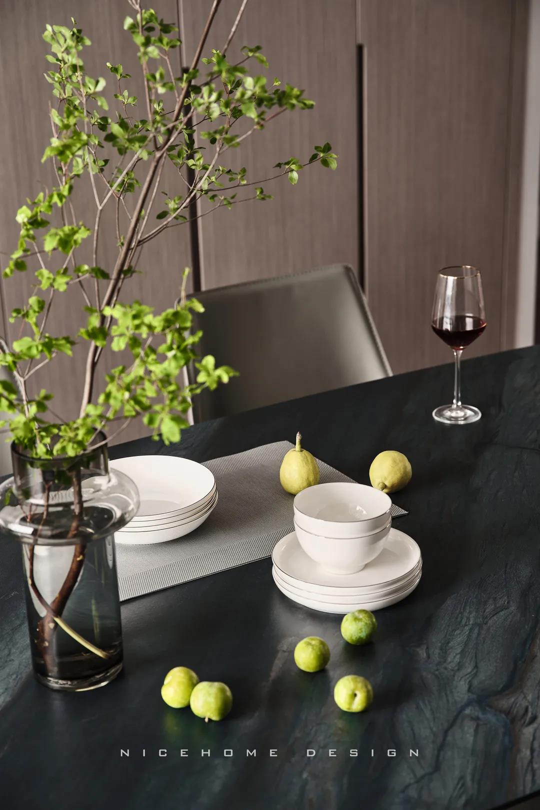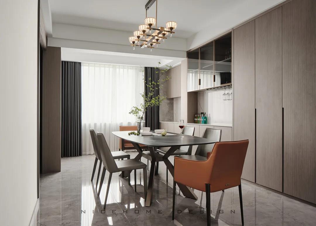 【項(xiàng)目·信息】 地址 / 銀億東岸 戶型 / 四室兩廳 面積 / 200㎡ 風(fēng)格 / 現(xiàn)代簡(jiǎn)約 設(shè)計(jì)施工 / 浙江南鴻裝飾 1 關(guān)于作品 本案以現(xiàn)代簡(jiǎn)約為主題,簡(jiǎn)潔明快的設(shè)計(jì)風(fēng)格為主調(diào),著力體現(xiàn)家的精致與個(gè)性,符合現(xiàn)代人的生活品味。 公共區(qū)域整體采用暖咖和黑、白色調(diào),溫和親切又帶著現(xiàn)代感的利落灑脫,木格柵增強(qiáng)視覺效果,軟裝上則重點(diǎn)用橙色點(diǎn)綴,烘托溫馨氣氛與活力感受。 2 戶型圖 3 設(shè)計(jì)落地 玄關(guān) ENTRANCE 玄關(guān)端景處一幅格外醒目的復(fù)刻畫,大色塊的紅彰顯熱烈、前衛(wèi),寓意主人對(duì)新生活的愛和熱忱,從今往后,要把每一天都過得“熱氣騰騰”! 客廳 LIVING ROOM 客廳,暖咖色伴隨著溫柔的觀感,讓時(shí)光也仿佛靜止于此。沒有特別多收納設(shè)計(jì),這里的一切布置均以“美”為第一要義。 電視背景墻的設(shè)計(jì),低調(diào)中透著華麗。高顏值的大理石磚搭配錯(cuò)落有致的木格柵,冷暖結(jié)合,細(xì)節(jié)處再點(diǎn)綴光影,簡(jiǎn)潔而富有格調(diào)。 木質(zhì)格柵,素來自帶一種東方禪意之美,虛實(shí)相生,正是架構(gòu)意境的獨(dú)到方式。木飾面板中藏起通往次臥的房門,視覺高度統(tǒng)一。沙發(fā)與茶幾選擇低矮款式,有利于縱向拉伸層高。 餐廳 DINING ROOM 一個(gè)優(yōu)秀的餐廳,光靠視覺,就能成功挑動(dòng)你的味蕾,再平凡的食物也因此裹上了一層美好滋味。 整排餐邊柜兼做酒柜,玻璃柜內(nèi)藏酒,儲(chǔ)物柜里存放食品,實(shí)用性與美觀度都是一流。窗邊做了小水吧,延續(xù)廚房的功能,餐前餐后的手部清潔也更方便。 在這里每天給孩子做一頓愛心早餐,給愛人煮一壺香醇的咖啡,幸福的感覺就這樣漸漸氤氳開來。 廚房 KITCHEN 廚房寬敞明亮,黑色櫥柜較一般櫥柜而言更能凸顯質(zhì)感,功能設(shè)備完善,在吊頂上也做足了功夫,造型感與線條感呼應(yīng)整體風(fēng)格。 過道 CORRIDOR 溫潤(rùn)的木材非常容易給人親近的感覺,無形中就消弭掉空間與居者的距離。過道一側(cè)設(shè)計(jì)儲(chǔ)物區(qū)域,層架上適合擺放書籍、小飾品等,空間瞬時(shí)生動(dòng)了起來。 臥室 BEDROOM 主臥延續(xù)公共區(qū)域的色調(diào),米灰色硬包和木飾面,讓溫暖、淡雅的味道徘徊其中。一盞暖意小吊燈垂下,增強(qiáng)空間的調(diào)性,小飄窗則賦予臥室更多的浪漫色彩,和對(duì)生活的美好想象。 次臥,皮藝、布料、金屬與線條的融合,交匯出高品質(zhì)精致感。 粉色是兒童房一直在流行的主題,許多女孩子的夢(mèng)里或許都有這樣一個(gè)如童話般的飄著粉紅泡泡的房間吧~